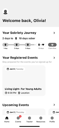The Stone Dry application brings events and milestones together, giving users a focused, supportive space for their journey.